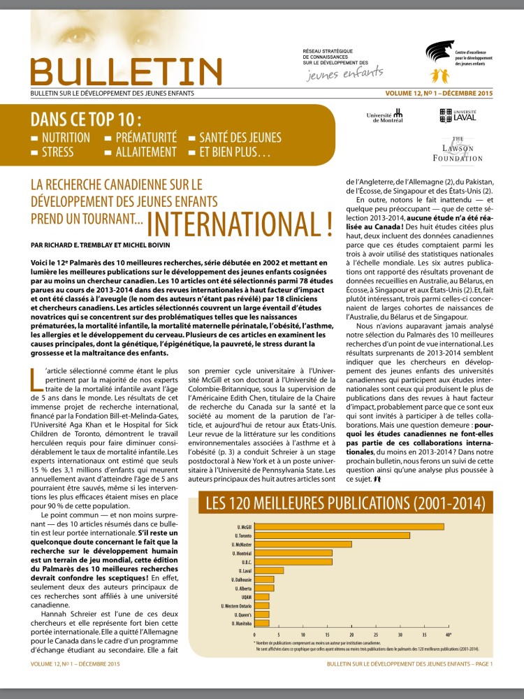 Pour lire le Bulletin : http://www.excellence-jeunesenfants.ca/documents/BulletinVol12No1Dec15FR.pdf